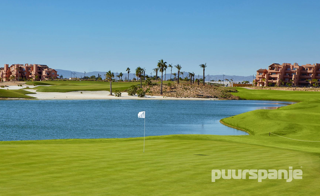 Aan de korte nabijheid van de Mar Menor dankt dit resort haar naam. Ook op de golfbaan speelt water een belangrijke rol in de vorm van hindernissen, dit dankzij het uitdagende ontwerp van golflegende Jack Nicklaus. Met een lengte van 6153 meter biedt deze par 72 een attractieve mogelijkheid van zowel de startende als gevorderde speler. Het prachtige resort is niet alleen voor golfers, maar ook voor degenen die van de warmte van de zon genieten in een ontspannen sfeer. Het 5 sterren Caleia hotel is uitgerust met een groot wellness centrum. Tevens bevinden zich op het resort meer dan 8 restaurants en bars, sportvoorzieningen, gezamenlijke zwembaden en een supermarkt.